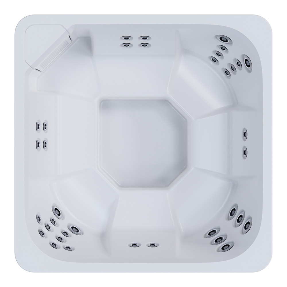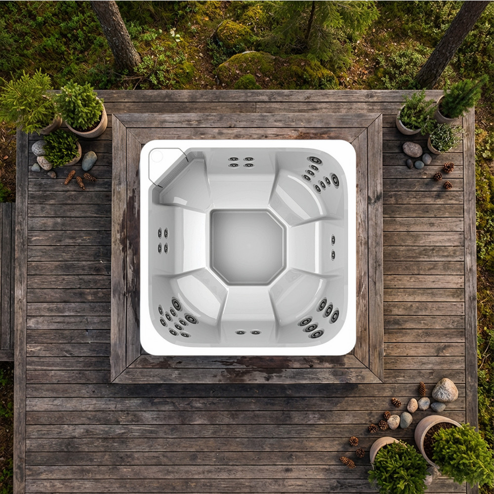 Novitek M-0 on ruumikas õuevann perele ja sõpradele, kus avarus ja ergonoomika on heas tasakaalus. 210 × 210 cm mõõt annab mõnusa ruumitunde, kuid sobib siiski hästi enamikule terrassidele ja koduaedadesse.